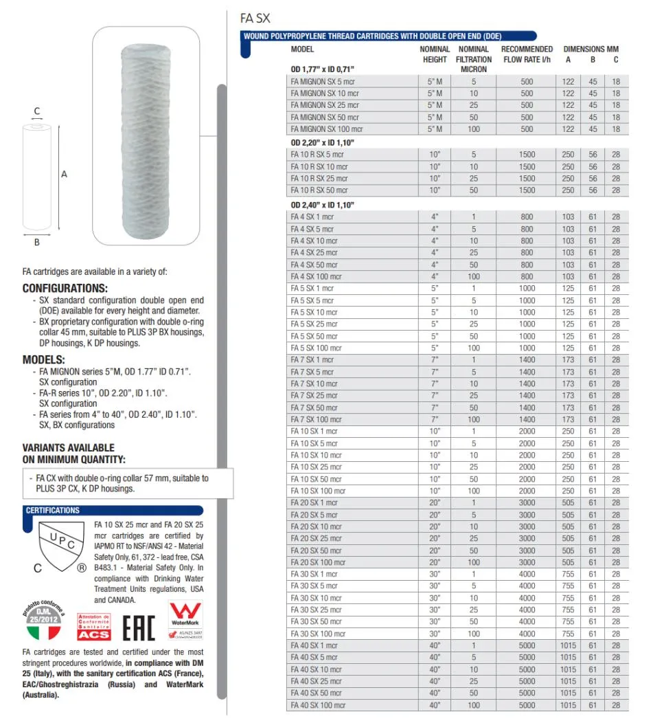 Mit einer Filterfeinheit von 25 Mikron ist das Atlas Filtri FA 10 SX PP Filtersieb der ideale Allrounder für die Sedimentfiltration im Haushalt. Es bietet ausreichend Schutz für die meisten wasserführenden Geräte, ohne den Wasserdruck spürbar zu reduzieren. Die gewickelte Struktur aus Polypropylen sorgt für eine Tiefenwirkung, bei der die Partikel im Inneren des Mediums gefangen werden, was zu einer hohen Effizienz führt.