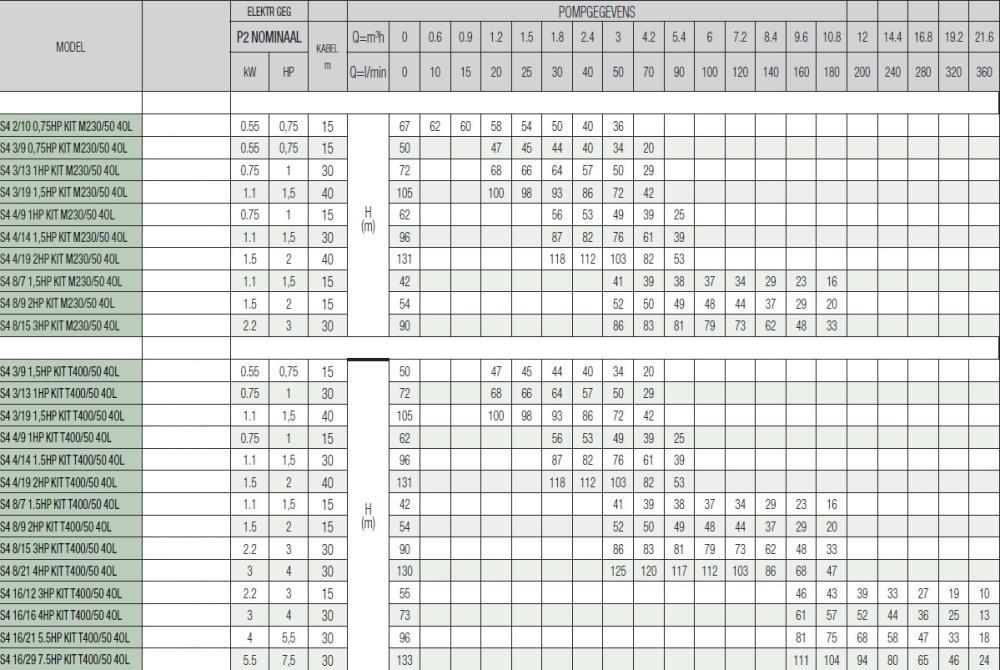 Pumpenkennlinie Dab S4 4/9 1HP KIT T400/50 4OL Brunnenpumpensatz