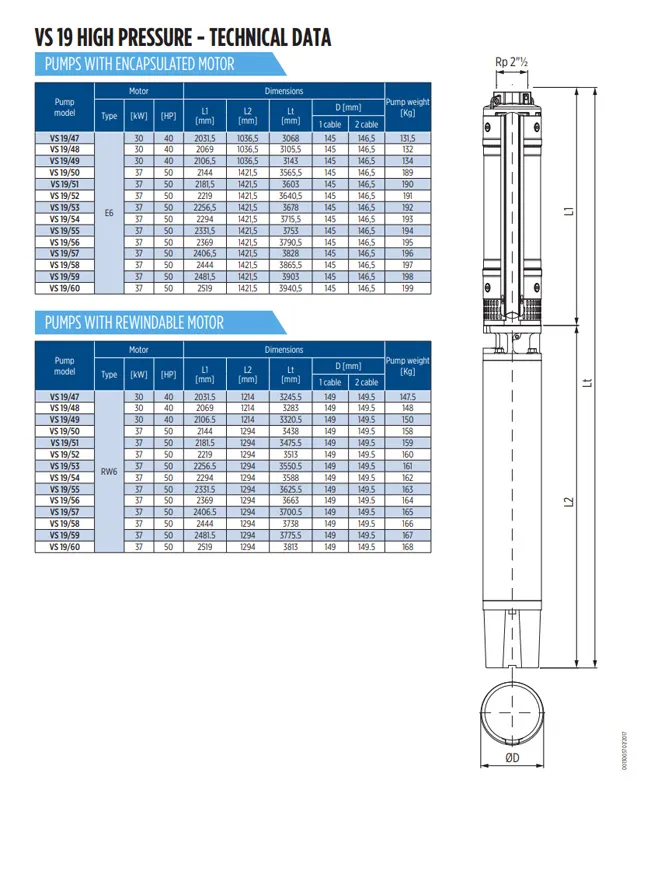 - Höchste Förderhöhe der 19-m³/h-Serie zur Überwindung massiver statischer Druckwiderstände durch 49 Stufen.