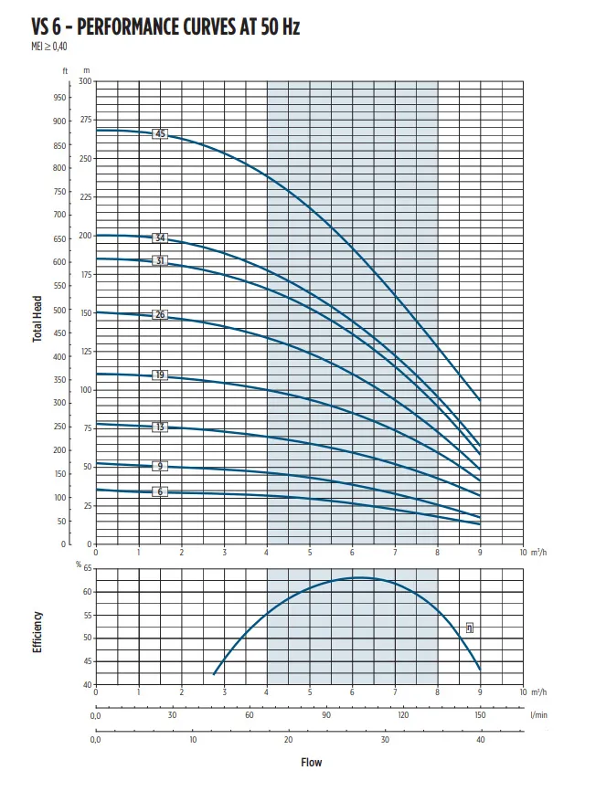 - Absolute Spitzenleistung in der Förderhöhe zur Überwindung gewaltiger statischer Druckwiderstände durch 26 Stufen.