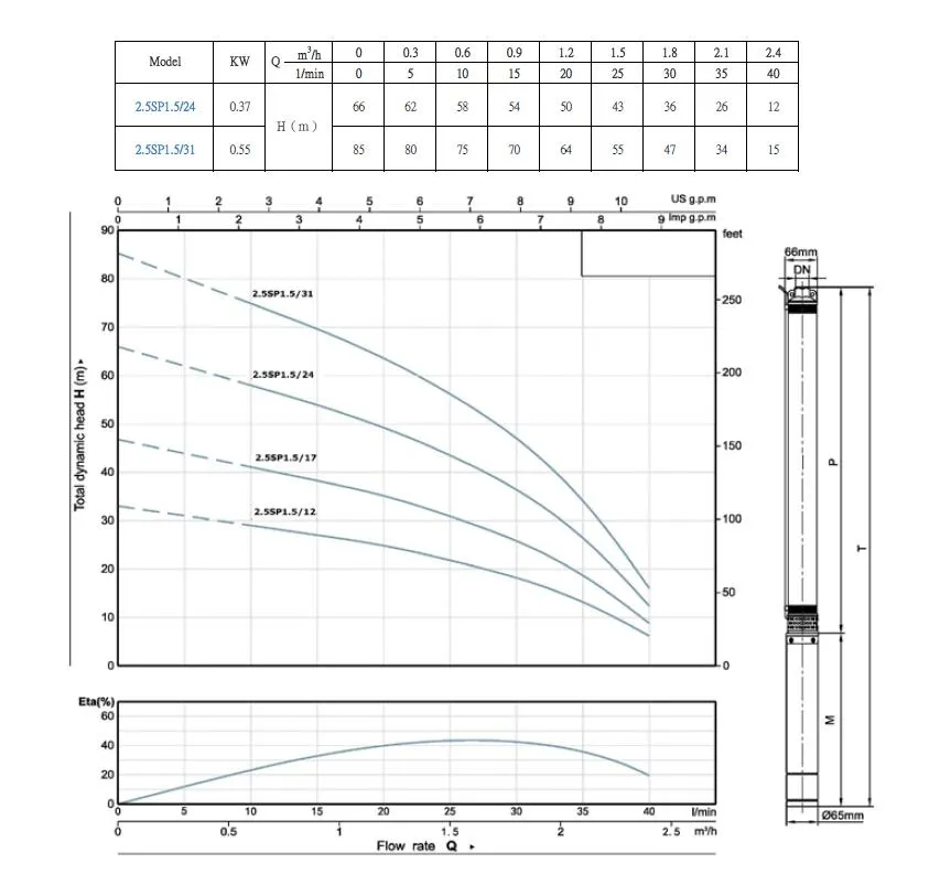 - Platzsparende Installation in engen Brunnenrohren ermöglicht die Erschließung kostengünstiger Bohrungen dank 2,5-Zoll-Gehäusegeometrie.