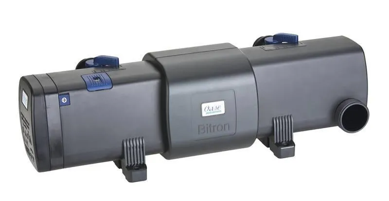 Das Oase Bitron C 55 W ist ein hocheffizientes UVC-Vorklärgerät zur Beseitigung von Schwebealgen und pathogenen Keimen in Teichen bis zu 60 m³. Es löst das Problem der Quarzglas-Verschmutzung durch ein patentiertes Reinigungsrad, das permanent durch die Wasserströmung angetrieben wird und das Glas von Belägen befreit. Die technische Konstruktion maximiert die UV-Bestrahlungsintensität und ist nach IP68-Sicherheitsstandards zertifiziert.