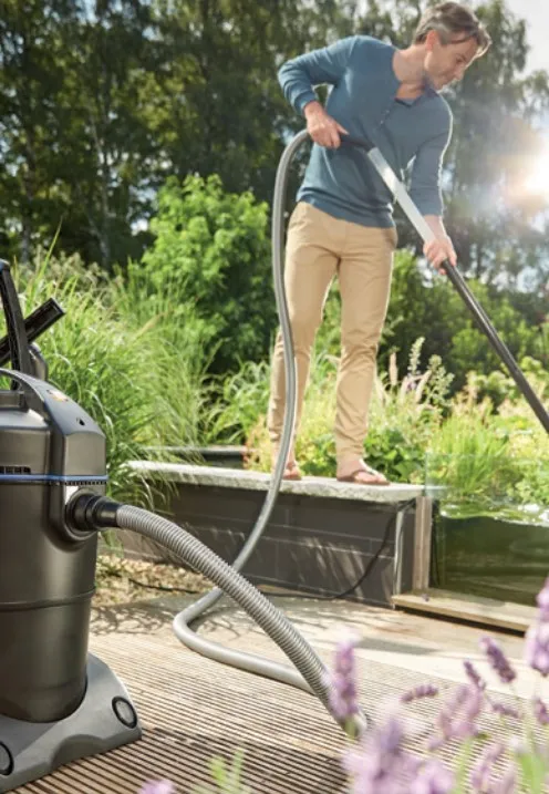 Pro-Tipp: Nutzen Sie den PondoVac 5 aufgrund der integrierten Druckpumpe idealerweise in Kombination mit einem Feinfilterbeutel, wenn Sie das gereinigte Wasser direkt in den Teich zurückführen möchten.