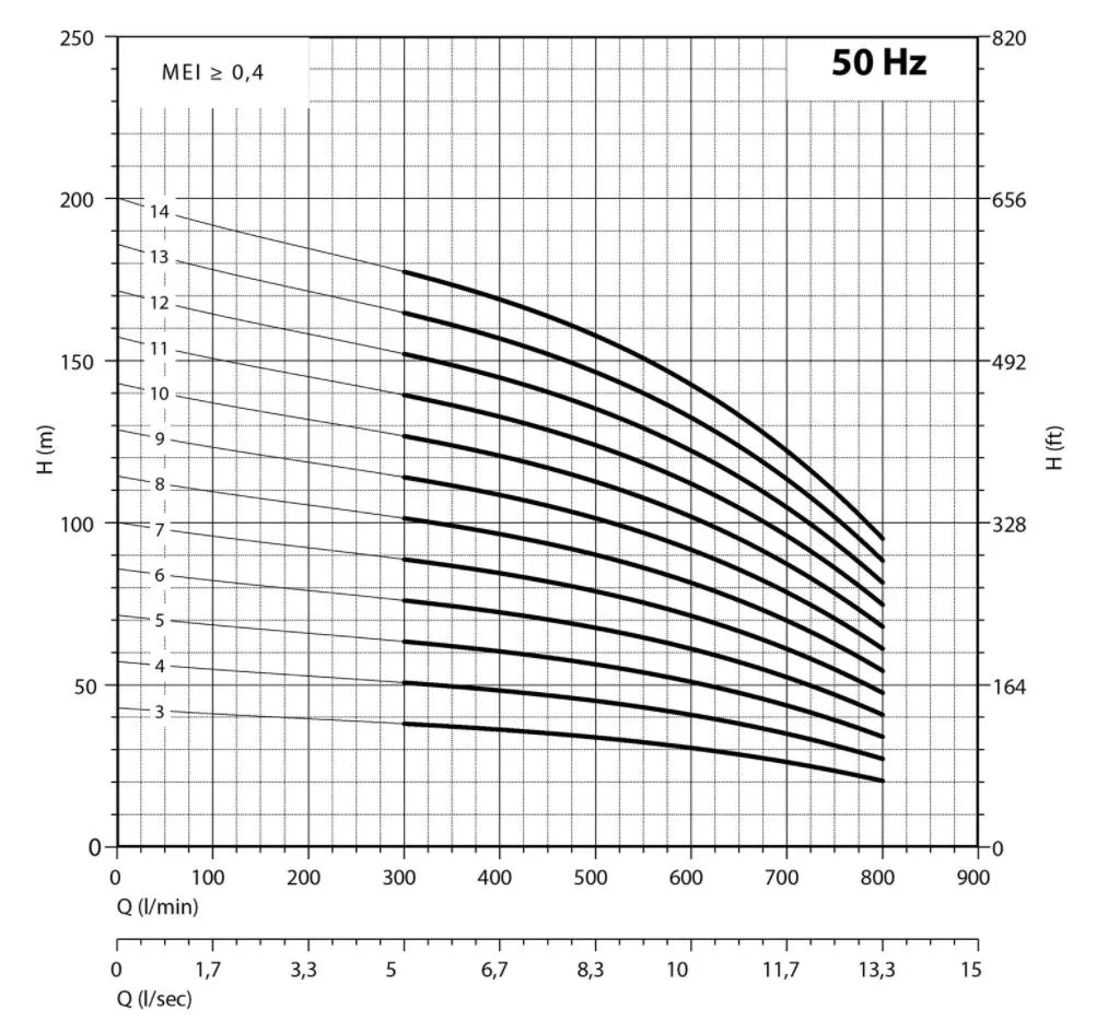 - Absolute Spitzenleistung in der Förderhöhe kombiniert mit 34 m³/h Durchfluss für anspruchsvolle Wasserwirtschaft.