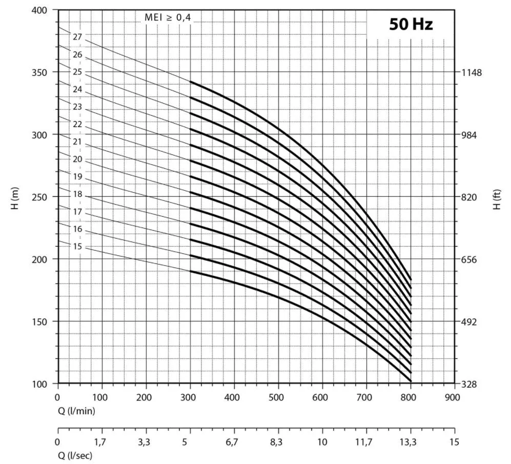 Pro-Tipp: Verwenden Sie bei dieser extremen Stufenanzahl zwingend einen Sanftanlauf oder Frequenzumrichter, um mechanische Spannungsspitzen beim Startvorgang massiver Wassersäulen sicher abzufangen.