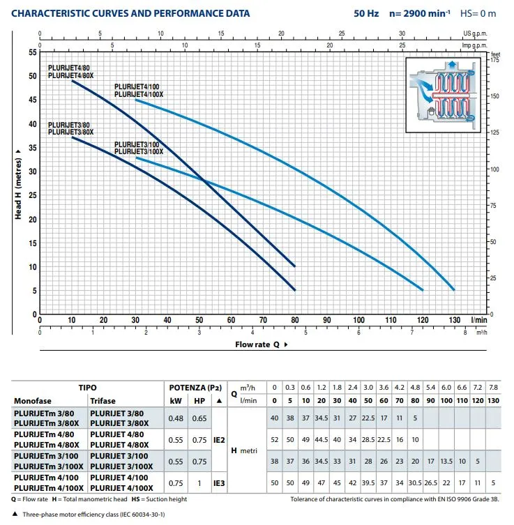 - Höchste Korrosionsbeständigkeit durch ein komplettes Pumpengehäuse aus Edelstahl AISI 304, ideal für kritische Wasserqualitäten.
