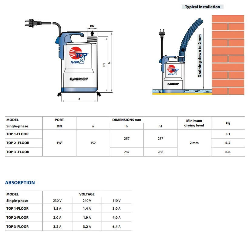 Die Pedrollo TOP FLOOR 1 ist eine hocheffiziente Flachsauger-Tauchpumpe zur präzisen Trockenlegung glatter Oberflächen in Kellern oder Garagen. Sie löst das Problem von Restwasserpfützen durch eine spezialisierte Ansauggeometrie, die das Absaugen bis zu einem minimalen Niveau von nur 2 mm ermöglicht. Die technische Konstruktion aus schlagfestem Technopolymer garantiert eine hohe Verschleißfestigkeit und Prozesssicherheit bei mobilen Noteinsätzen.