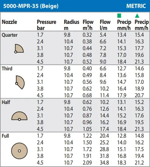Der Rain Bird 5000-MPR Düsensatz (Braun) ist für kleinere Wurfweiten von ca. 7,6 m (25 Fuß) ausgelegt. Er ist perfekt für schmalere Rasenstreifen oder kleinere Gartenbereiche geeignet, in denen ein präziser Wasserauftrag ohne Verschwendung auf Wege oder Zäune gefordert ist. Dank der Matched Precipitation Rate erzielen Sie ein perfektes Grün bei minimalem Wasserverbrauch.