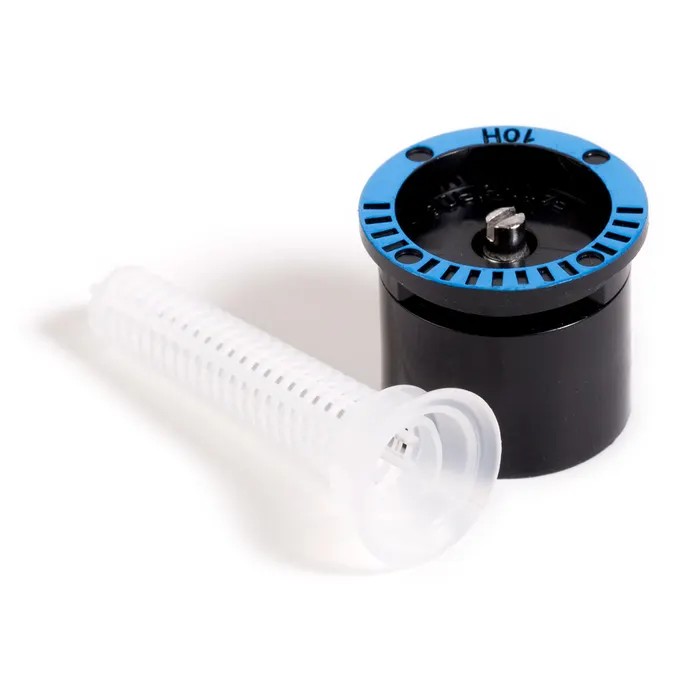 Perfekt für Randbereiche in kleineren Gärten oder entlang von Gehwegen. Die Düse wird handfest auf den Regneraufsteiger geschraubt. Der enthaltene Filter fängt Schmutzpartikel ab, bevor sie die Düse erreichen. Die Ausrichtung des Sprühstrahls erfolgt durch manuelles Drehen des Aufsteigers im Gehäuse. Ein unverzichtbares Bauteil für eine wassersparende, zielgerichtete Beregnung.
