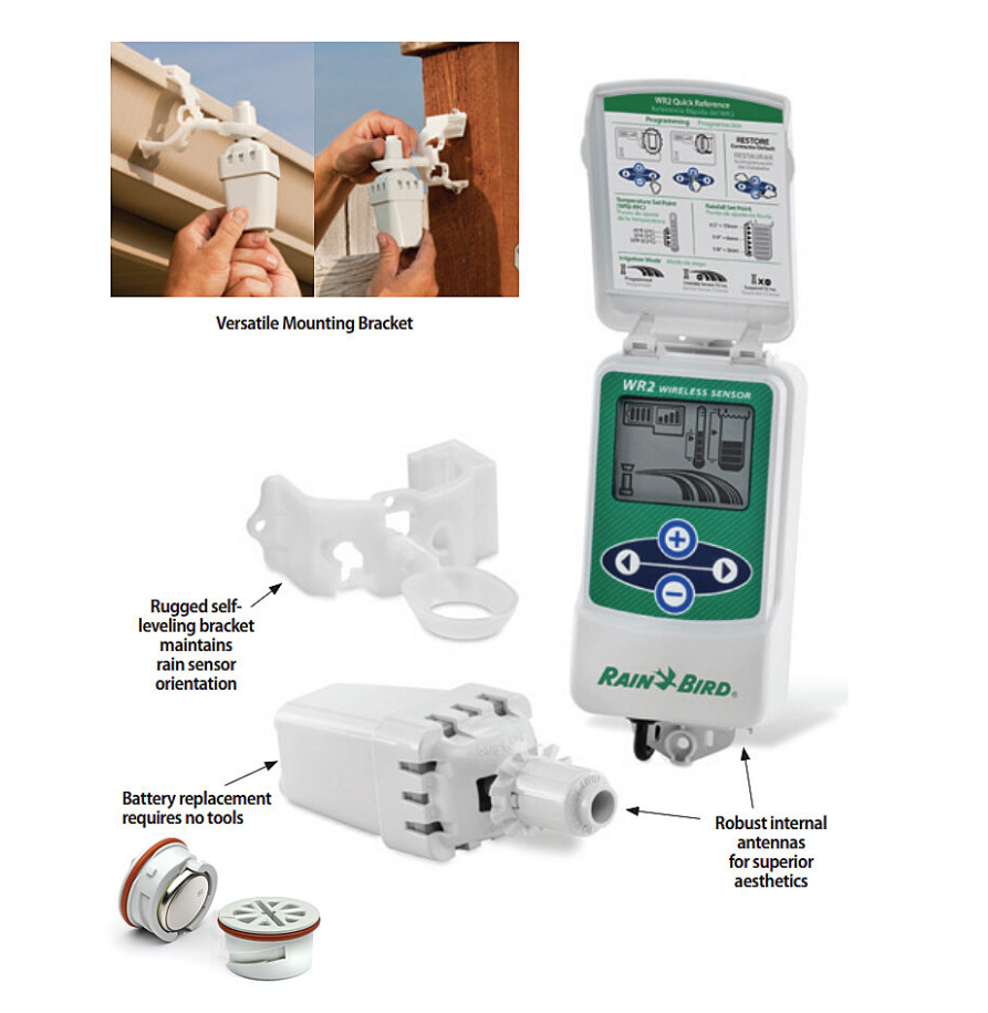 Der Rain Bird WR2-RFC ist ein hochmodernes, drahtloses Kombigerät, das sowohl Regen als auch Frost erkennt und die Bewässerung sofort unterbricht. Dieses System bietet maximalen Komfort, da keine Kabel zwischen dem Montageort des Sensors und dem Steuergerät verlegt werden müssen. Dank der "Quick Response"-Technologie stoppt das System bei Regenbeginn schneller als herkömmliche Sensoren, was die Effizienz Ihrer Anlage maximiert.