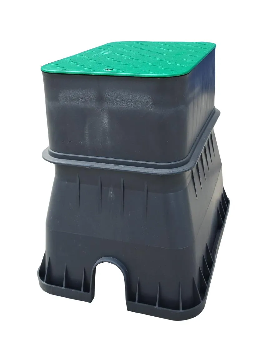 Die eckige Ventilschacht Verlängerung mit einer Höhe von 16,5 cm dient zur Erhöhung bestehender Standard-Ventilboxen. Sie ist die technische Lösung, wenn sich das Geländeniveau nach der Installation der Bewässerungsanlage geändert hat oder die Rohrleitungen tiefer verlegt werden mussten. Die Verlängerung wird passgenau auf den Korpus der Basisbox gesetzt und gewährleistet weiterhin den geschützten Zugang zu den Magnetventilen.