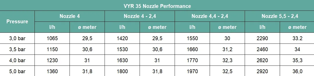 Der VYR 35 Schwinghebelregner ist ein robuster Rundumläufer aus hochwertigem Messing, der speziell für die landwirtschaftliche Beregnung und industrielle Anwendungen konzipiert wurde. Als Vollkreisregner bietet er eine kontinuierliche 360°-Bewässerung mit einer hohen Wurfweite und ausgezeichneter Windstabilität. Seine langlebige Metallkonstruktion garantiert eine zuverlässige Funktion auch unter schwierigen klimatischen Bedingungen und bei intensiver Nutzung.